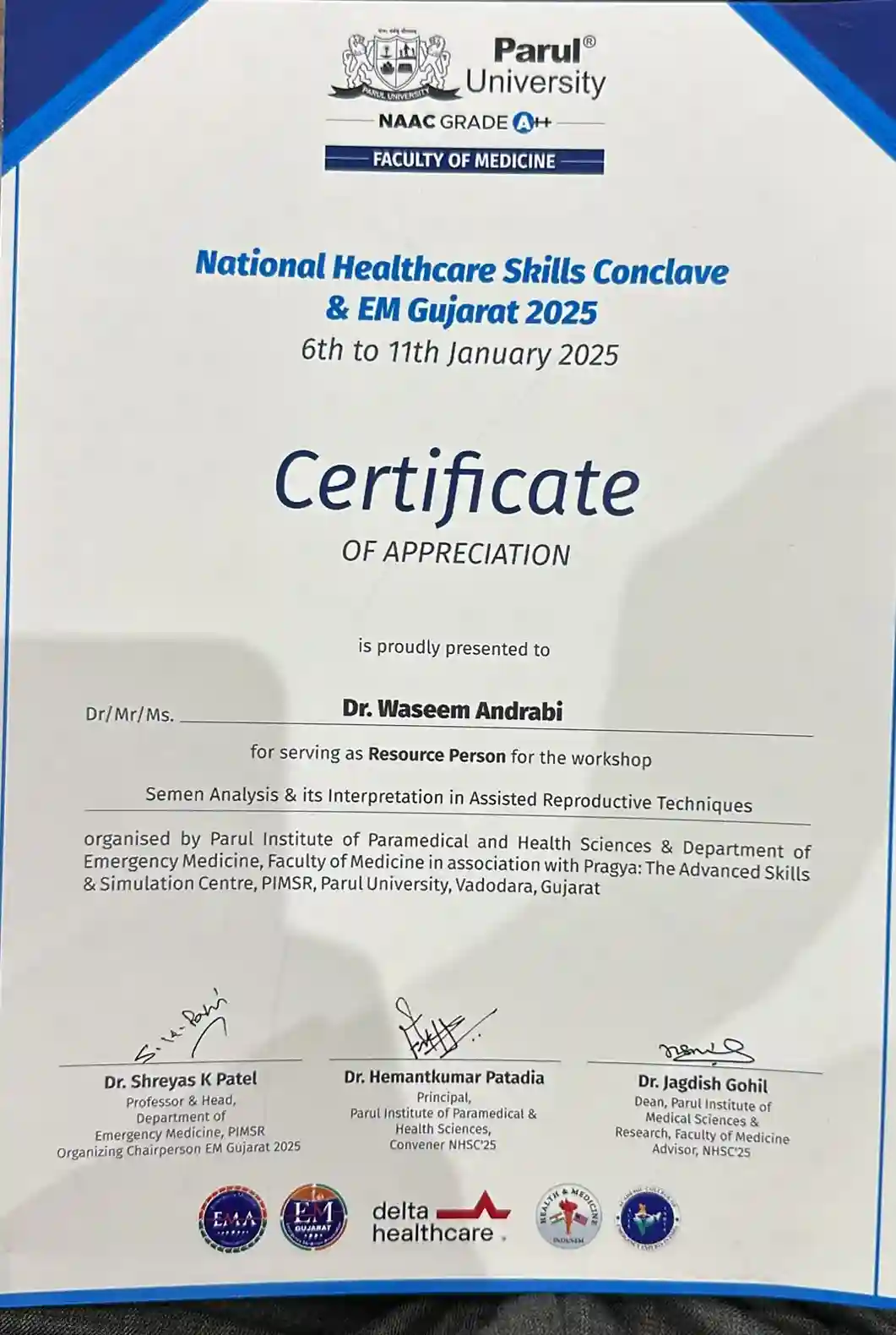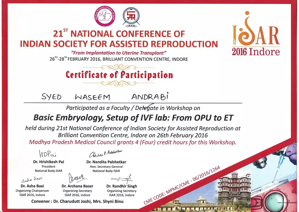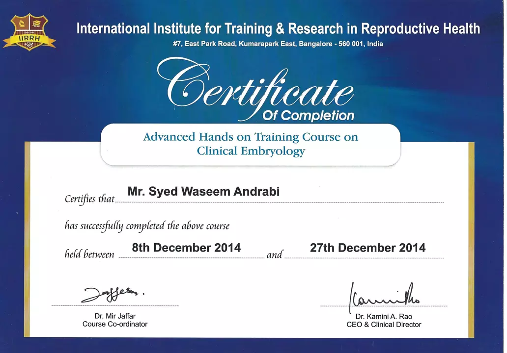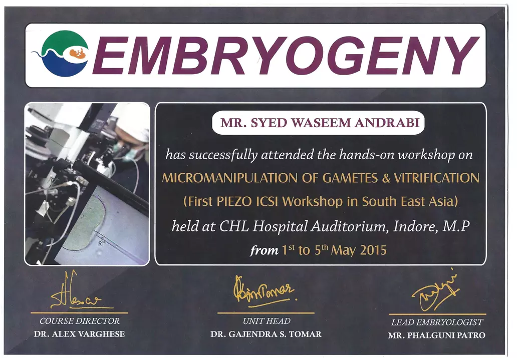 Dr. Waseem Andrabi is a distinguished embryologist with over a decade of experience in reproductive science. His expertise and compassionate approach have helped countless couples achieve their dreams of parenthood.
